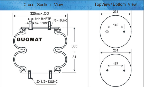 O desenho e os dados da mola de ar GUOMAT 2B7405: